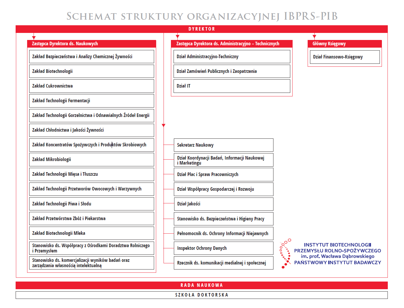 Schemat struktury organizacyjnej określający podział funkcji członków dyrekcji i pracowników na samodzielnych stanowiskach oraz zależność służbową jednostek organizacyjnych